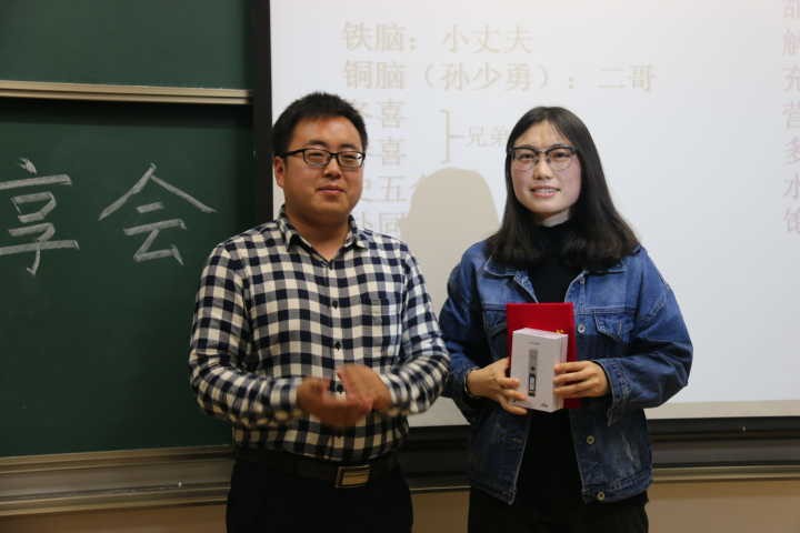 武君老师和赵志强学长也与在场同学分享了自己的读书心得与体会。读书会不但让我们感受到文字之美,尽享阅读之乐。还对发言同学分享成果进行了评比。经评委老师、学长学姐评定,越月同学带来《尔雅》深受好评,荣获一等奖。步海霞和李娜并列获得二等奖,乌日娜及尹雅楠、李雅琦获得三等奖。