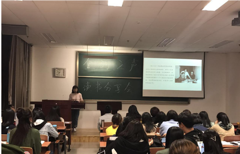 翟丽娜同学为大家带来了杨绛先生的《我们仨》一书。翟丽娜用自己的体会感受将文章的三大部分,分别概括为:“梦”;“古驿道、客栈、船”和“家”,并且在最后送给同学们一句话以结束她的分享:世间好物不坚牢,彩云易散琉璃碎。宋宏敏同学分享了鲁思·本尼迪克特的《菊与刀》,详概这本书主要是介绍日本人的矛盾性格:荣誉感和耻感文化。这本书是我们了解日本不得不读的经典著作。候孟娇同学分享了冯唐先生的《在宇宙间不易被风吹散》,我们通过身体和心灵,透过接触到的事物了解自己和这个世界,人慢慢长大,喜欢略过本质看现象,一日茶,一夜酒,一部毫不掩饰的小说,一次没有目的的见面,一群不谈正经事的朋友,用美好的器物消磨必定留不住的时间。