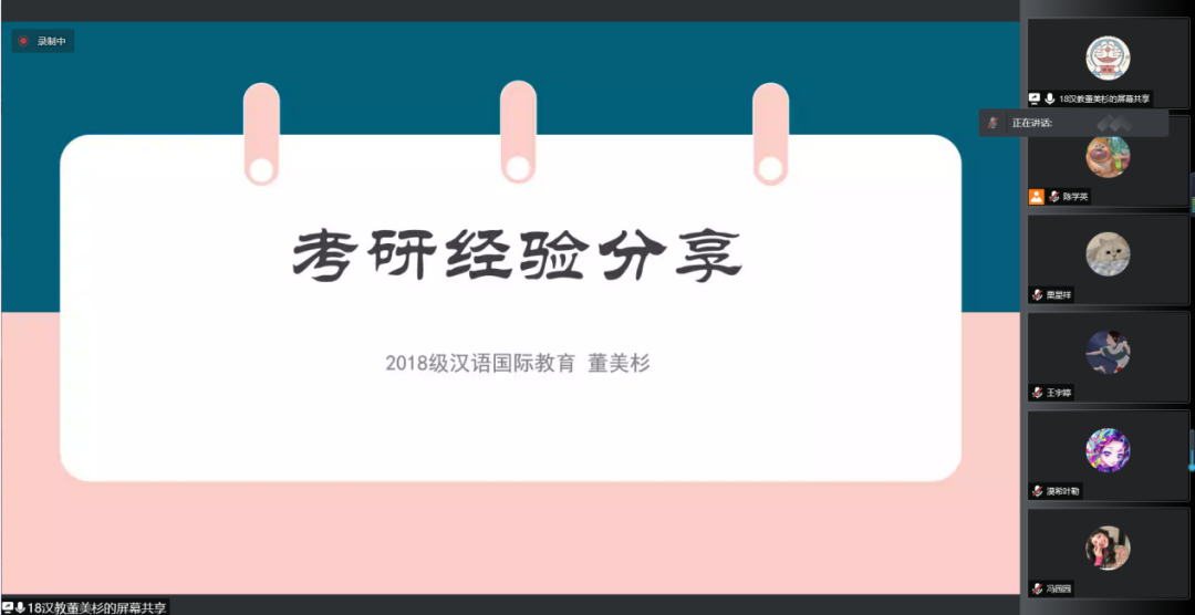董美杉,2018级汉语国际教育专业员工,考研至南开大学语言学及应用语言学专业。她向大家介绍了研究生考试中大综合和小综合的区别,并提醒同学们要根据自己的兴趣、自身能力以及目标的实际情况来选择合适的院校。