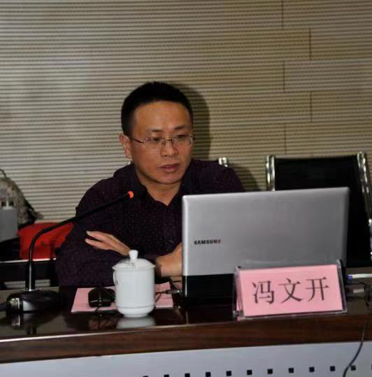 项目首席专家冯文开教授从研究价值与意义、总体研究框架和子课题构成、关键点、重点难点、创新之处、研究思路与方法以及预期成果等方面向专家组做了总体汇报。