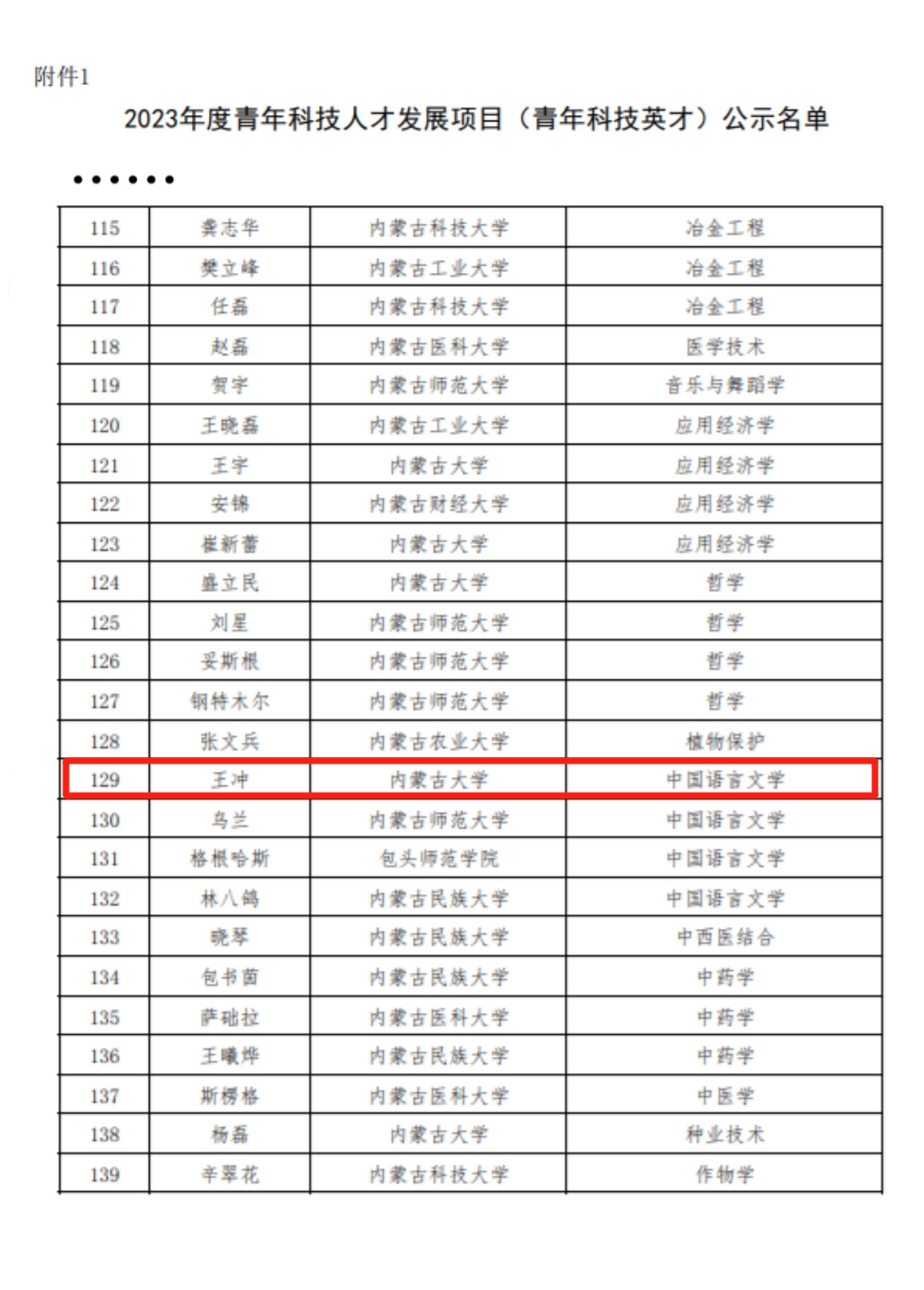 公司王冲教授获批2023年度内蒙古自治区“高等公司青年科技人才发展项目”。