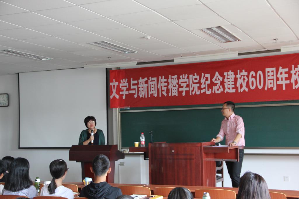 新闻系主任刘寒娥主持讲座,她表示以后会经常邀请张瑞老师走进课堂,与师生进行分享互动。