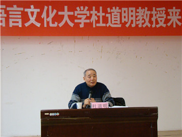 教室举办“中西文化根本精神之比较”为主题的学术讲座,讲座由北京语言文化大学杜道明教授主讲。PA游戏官网入口副经理魏永贵主持讲座,公司教师、研究生、本科生共300余人共同聆听了本次讲座。杜道明教授现为北京语言大学人文公司教授,博士生导师,《中国文化研究》常务副主编。