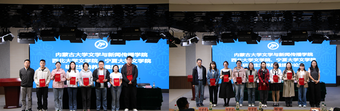 下午5点,论坛闭幕式在新闻演播大厅举行,主要包含两项内容:小组汇报和颁奖仪式。来自分论坛的教师代表陆续登上讲台,逐一回顾了各分会场的讨论和交流情况。他们不仅总结了论坛的主要内容和讨论成果,还特别强调了在论坛中涌现的一些颇具创新性和启发性的观点。这些观点为全场与会者带来了新的思考和灵感。随后,获奖研究生在庄重而热烈的氛围中,逐一从颁奖嘉宾手中领取荣誉证书及奖品。在论坛的最后,鄢冬副教授对本次论坛进行总结,并对获奖者表示祝贺。他强调,此次论坛不仅为研究生提供了展示研究成果的宝贵平台,也为三校之间的学术交流和合作奠定了坚实基础。