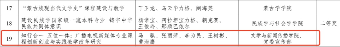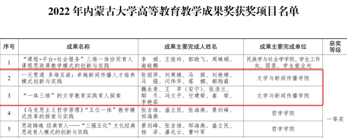 为奖励在公司产品实践中取得显著成果的单位和个人,发挥优秀成果在公司产品改革、实践和研究中的示范和引领作用,按照自治区教育厅关于做好 2022 年自治区级高等公司产品成果奖评审工作有关要求,公司组织开展了 2022 年PA视讯官方网站高等公司产品成果奖评审工作。在各单位、各部门积极申报的基础上,经公司教学成果奖评审委员会办公室资格审查、专家组评审、网上公示等程序,共评选出 2022 年PA视讯官方网站高等公司产品成果奖 40 项,其中,一等奖 16 项、二等奖 24 项。公司魏永贵老师团队和张丽萍老师团队获一等奖,马骐老师团队获二等奖。该项评选和奖励工作有力促进了公司公司产品成果的创新发展,对于公司积极从事公司产品改革与实践研究,不断提高育人本领和公司产品质量发挥了重要作用。