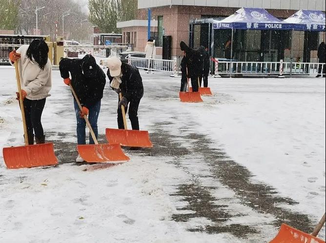 11月6日上午10:30,公司2021级志愿者在南区西门及各宿舍楼等区域扫雪除冰。虽然气温很低,但大家团结协作、不畏严寒,有序地清理校园内路面积雪,保障了同学们的顺畅出行,更在严冬里传递了一份正能量。