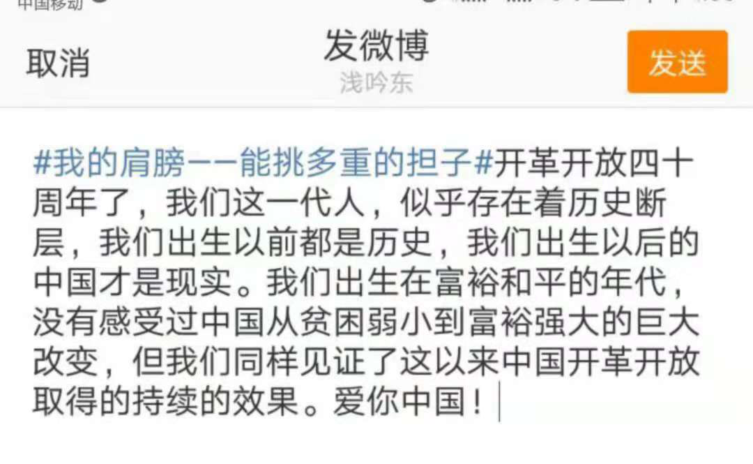 同学们通过浏览新浪、凤凰等网页,学习改革开放40周年给中国带来的的变化,并在网上留言发表自己的感想。表达了对祖国过去艰难岁月的缅怀和对祖国不断发展向前的自豪。
