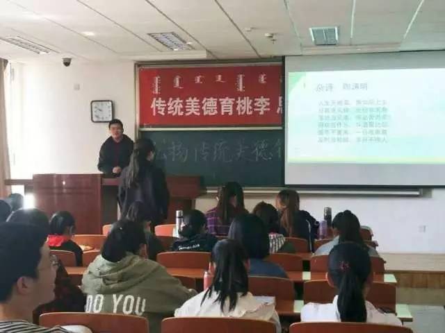 4月25日上午,2016级汉语言文学班开展了以“弘扬传统美德,抒写精神华章”为主题的“传统美德育桃李·思政教育进课堂”团日活动。