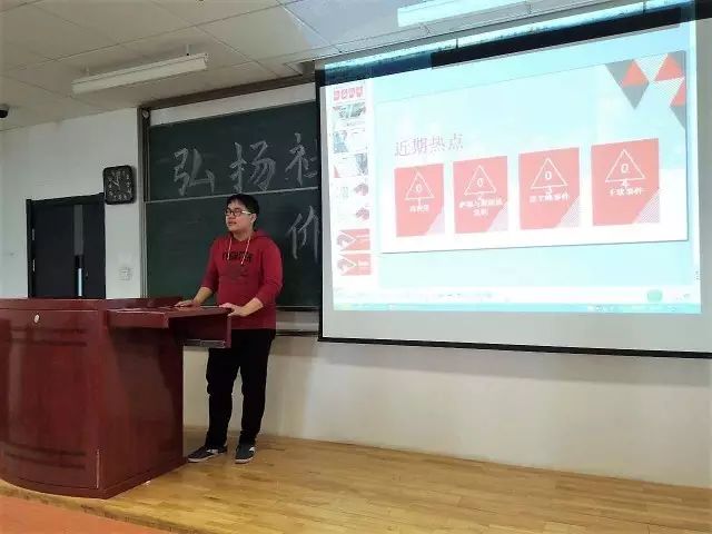为增进青年学子对中华优秀传统文化的认识和了解,进一步提升文新学子的文化素养,公司在全院各班级正式启动“传统美德育桃李·思政教育进课堂”系列活动。本次活动将从第6周开始,第12周结束,活动的具体时间为课前10分钟。本次系列活动以班级为单位开展,活动内容和形式由各班自行创新设计。活动创新了思政教育的方式方法,充分调动了员工学习传统文化、关注时事政治的积极性和主动性,也有利于增进师生间友谊,提高班级凝聚力。 传统美德育桃李·思政教育进课堂活动首先在2014级新闻班和2015级播音与主持艺术班试点进行。