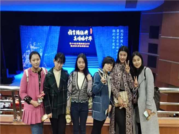 2015年11月13日,公司播音与主持艺术专业的六名大一新生在新闻系刘艳婧副教授和辅导员段佩璟的带领下赴中国传媒大学观看了第十七届齐越节朗诵演出。