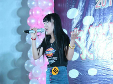 2013年度“校园十佳歌手”、2013级播音与主持专业陈甲科用低沉而富有磁性的嗓音演唱《空白格》 |