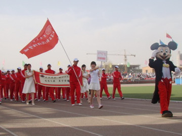 运动会开、闭幕式上,文新院员工方阵队伍英姿飒爽、步伐整齐坚定、口号激情响亮、红装鲜艳明丽。美丽优雅的护旗手手持深厚文化底蕴的卷轴标语,“五五风华 魅力内大 悠悠文苑 厚学博雅”的鲜明主题令观众瞩目。富有创意的吉祥物米老鼠,形象可爱,憨态可掬,为公司领导表演了舞蹈,成为增添会场喜悦祥和气氛的一个亮点。