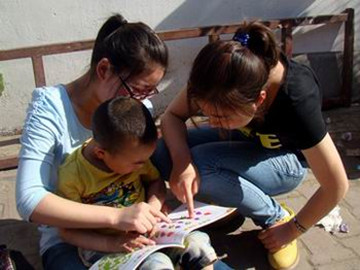 | 志愿者与孩子们一起学习 |