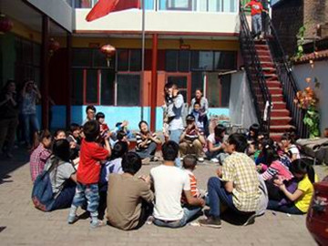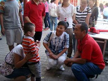 聋哑特殊教育公司的孩子们对于大家的到来显得特别激动,大家刚进校门就被小朋友们热情地围着。他们虽然不会用语言表达自己的感情,但是从他们的天真无邪的眼神和笑容中可以看出他们对大哥哥大姐姐的喜爱。同学们和小朋友们围坐在一起玩了丢手绢的游戏,又为他们表演了各种儿歌,校园里欢声笑语,掌声不断,将欢乐的气氛推向高潮。