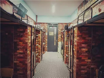 4号楼的524宿舍尤其别具一格,匠心独运。红色砖块的壁纸在带来复古气息的同时,也在无声表达着一种严谨、坚实的精神特质。与地上的黑白格相衬,让人不禁联想到朴实刚健的教堂建筑。
