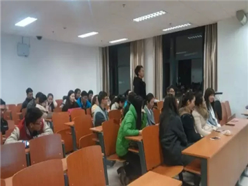 董晓宇辅导员从学习、朋友、爱情、未来四个方面分别介绍了台下同学们将要面对的老员工活。 她向同学们说明大家面对学习的正确态度,教会了同学们如何正确与人相处。当谈到爱情时,董晓宇辅导员为台下的同学们讲了自己浪漫的爱情故事,脸上露出了幸福的微笑。