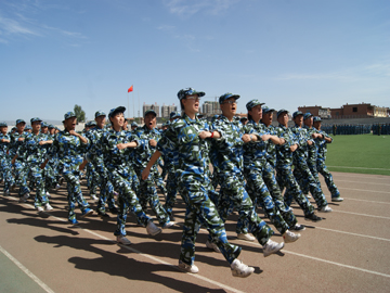 七天的军训中,尽管烈阳高照,但公司工作人员始终陪伴在参训员工身边,为同学们进行全天侯的服务,给同学们提供服务和帮助,解决他们在军训中遇到的问题,缓解他们的压力,做他们最坚强的后盾,使他们拿出全部的激情和斗志来迎接军训的挑战。同学们也没有辜负众人的期望,发扬了不怕苦、不怕累、顽强拼搏、力争上游的精神,与教官密切配合,听从教官指挥,训练过程中一丝不苟,全神贯注地做好每个动作,力求达到整齐划一,用汗水在田径场上书写着他们无悔的青春。