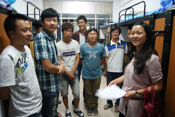 老师走访了公司2011级新生宿舍,了解新生的入住情况。