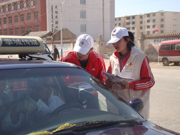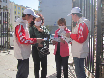 下午3:00,8名统一身着红十字会衣服的青年志愿者来到观音庙社区。经过专业培训的他们,主动向过往行人发放宣传单和《备灾防灾及卫生救护常识》知识手册,热情的向过往社区居民宣传造血干细胞和艾滋病的预防等知识,同时他们还在社区宣传栏粘贴海报,并设置专业咨询台,细致耐心地向上前咨询的社区居民讲解有关知识。