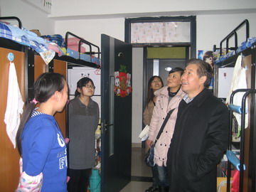 在走访宿舍的过程中,王俊川书记再三提醒同学们要注意寝室的防火、防盗和用电安全,并与同学们亲切交流,了解同学们的生活、学习状况。