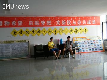 对于公司的新生报到处,公司也进行了精心的安排布置。一进入主教学楼九楼东侧,墙上“亲爱的家长、同学,您一路辛苦了”几个大字映入眼帘,公司的宣传展板、备好的桌椅、热水、矿泉水为前来报到的员工和家长营造了家的温馨氛围。