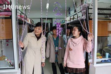 同学们利用课余时间亲自动手装饰自己的“家”。雅室或以温馨为主题,浪漫轻盈;或以民族团结为特色,和谐共融;或以本宿舍文化为基调,流光溢彩。“小屋是我家,建设靠大家”,在齐心协力装扮宿舍的同时也增进了同学们之间的友谊,强化了同学们的动手能力和审美意识。