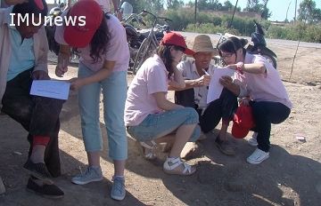 实践队的队员们还抓住时机向村民们发放有关新农村建设情况、生产生活情况、文化需求和新闻接触问题的调查问卷。在村民们积极配合下,顺利完成了当地的调查任务。另外,队员们还通过与村民的面对面交流了解到一些问卷上没有的具体信息和问题,在达利壕村十社的社长农户张志生的家中,同学们与这位村里威望较高的“村领导”进行了长时间的交流,详细了解了村里农民的生产生活情况,收获不小。