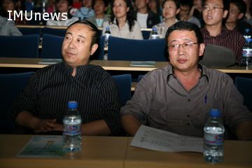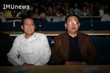 哲学PA游戏官网入口党总支书记李笑春教授(右)、汉语言文学系系主任高建新教授(左)观看演出 |
