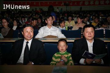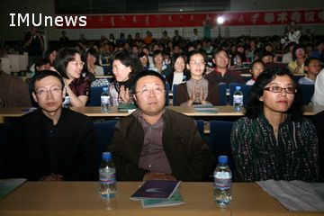 校团委书记(学工处处长)杜晓东(左)、教务处副处长刘实教授(中)、PA游戏官网入口副经理王芳教授(右)观看演出 |