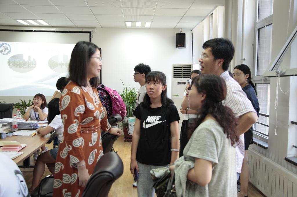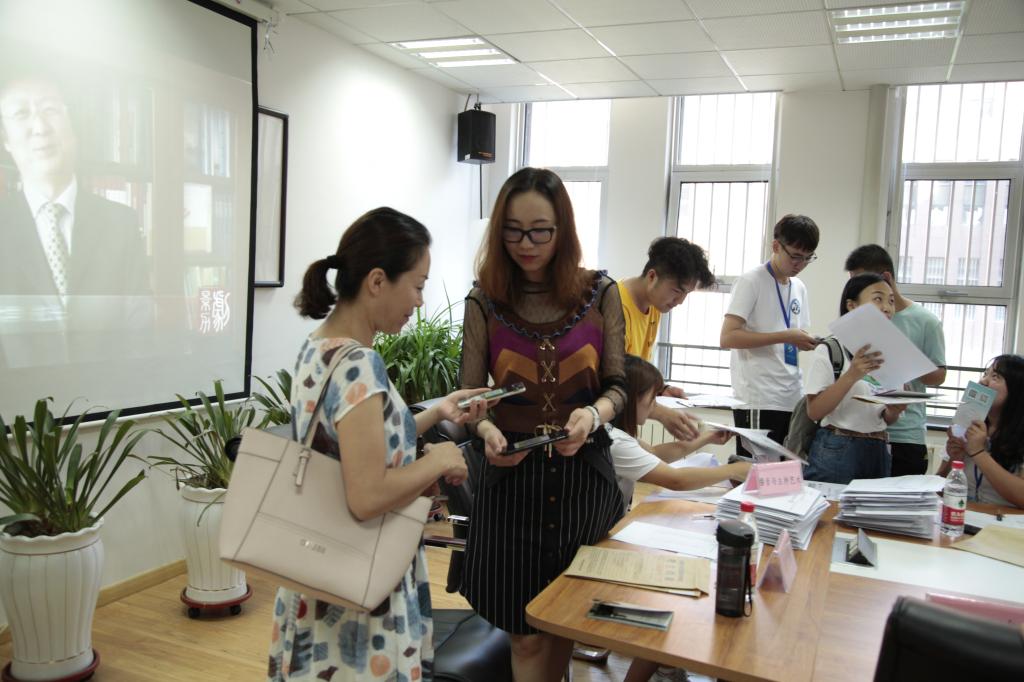 会议室内外的椅子上坐满了焦急等待的新生家长们,时刻关注着与孩子们切身相关的信息,询问老师和工作人员有关入学的一些问题。
