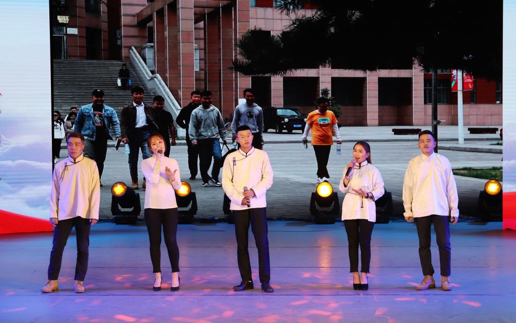 第二篇章“歌 青春草原”,生动展现了内蒙古独特的文化艺术和PA视讯官方网站各族青年昂扬向上的精神风貌,激荡着在座观众心中的草原情怀。民族学与社会学公司、民族预科班、内蒙古播音主持朗诵演讲协会分别带来的《彩虹青年》、《天上的草原》、《青春草原》等精彩节目,讴歌了美丽家园的绿水青山,展现了内蒙古各族儿女美好幸福的生活;在节奏欢快的草原牧歌声中,蒙古学公司带来的舞蹈《走马》,激越的旋律、奔放的舞姿,令人心潮澎湃,激动不已。现场掌声、欢呼声此起彼伏,整个小剧场成了欢腾的海洋。