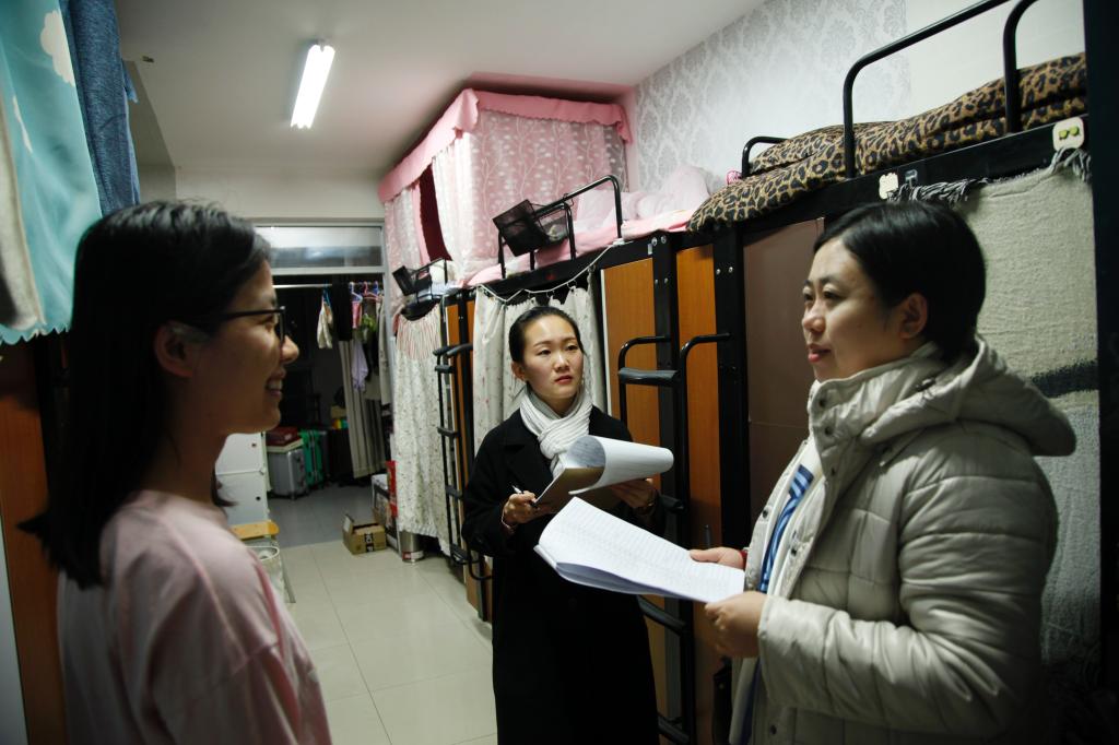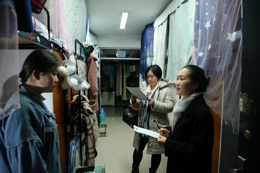任文秀老师详细地向同学们了解了宿舍的日常学习和生活情况,同时,提醒大家提高安全意识,不要使用违规电器,如果有需要公司帮助协调的事项要及时反馈给公司老师。夜查走访的过程中,老师和员工会成员走进每一间宿舍,对同学们反映的宿舍水电、书桌、门锁报修等问题做了认真记录。