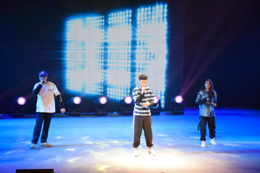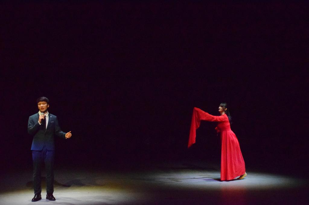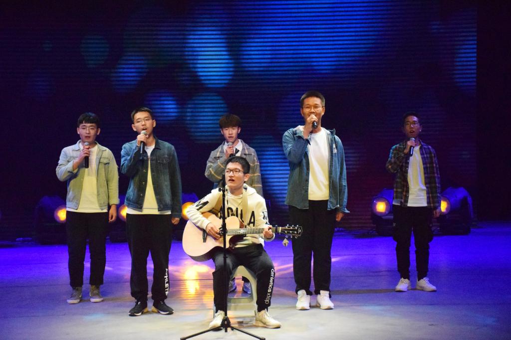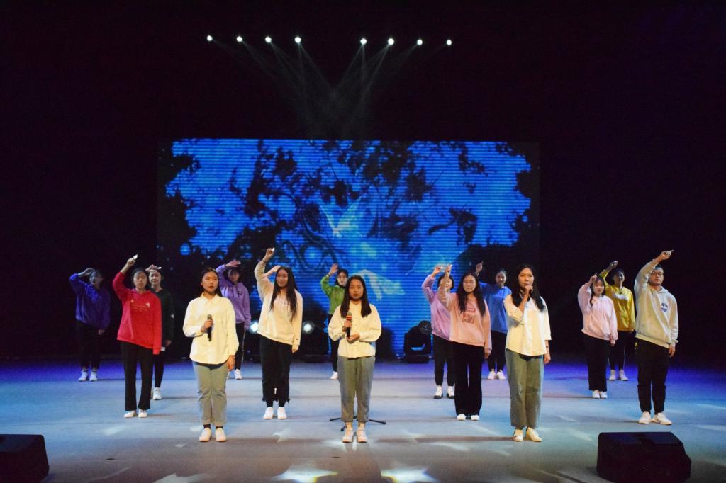在第一篇章“同聚文新,无畏少年行”中,2019级的同学们大放异彩。不仅有轻缓悦耳的歌曲弹唱《单曲循环》与《蓝莲花》,还有令人轻松愉悦的舞蹈《失恋阵线联盟》。除此之外,还有研究生于然与本科生刘翔宇呈现的朗诵《匆匆》(节选),感慨时光流逝。