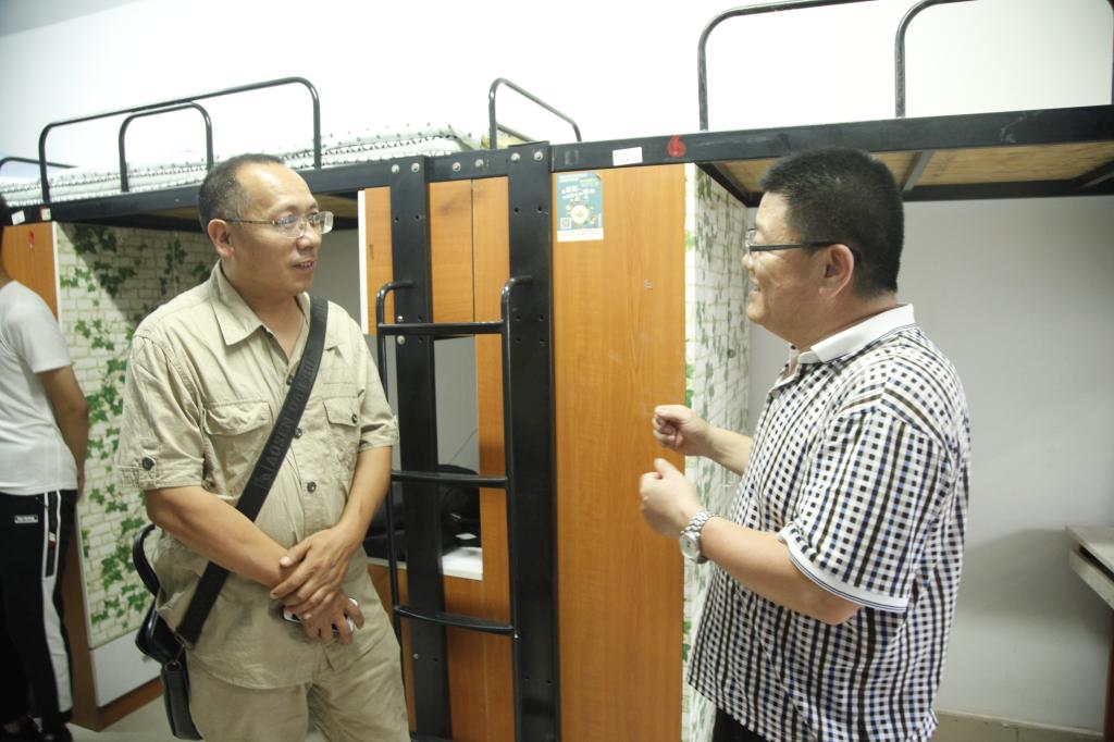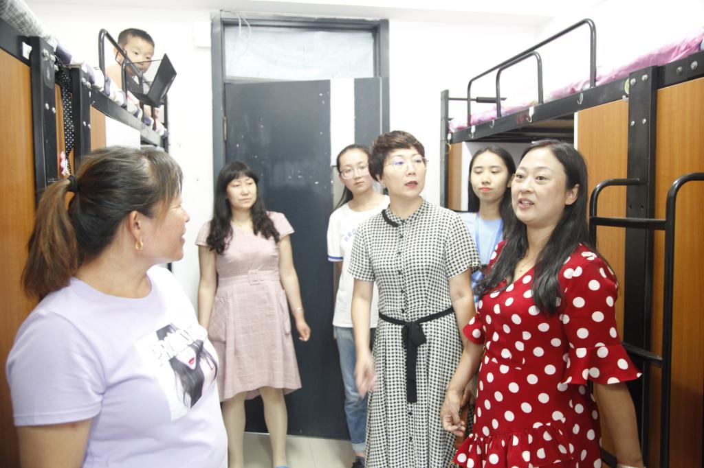 周琳娟老师以及各班班主任、辅导员走进新生宿舍。老师们和各班新生愉快地聊起了天,询问新生行李安置状况,对老员工活的适应情况等。同时,老师们希望同学们能尽快适应老员工活,克服军训期间的各种困难。老师们强调同学们在为期两周的军事训练中,要发扬吃苦耐劳的精神,严格遵守公司的各项规章制度,尤其对于军训期间的宿舍内务,老师们提出了明确的要求,并希望同学们在学习生活中遇到任何困难可以及时和老师沟通解决。