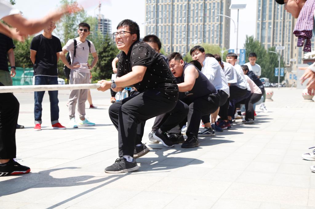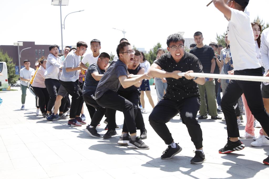 本次比赛采用男女混合制,各公司参赛队伍需5名男生和10名女生组成。由王海龙、照日登嘎、乌日罕等15名同学代表公司参加了比赛。各队完成抽签分组后,随着裁判老师的手势,比赛开始。比赛过程中,场上的同学们齐心协力握住绳子,卯足了劲的往后拉,直到赢得胜利,表现出了顽强的意志和拼搏的精神,在领队的喊号中,队员们个个精神抖擞,团结一心。场外的同学们用呐喊声助威,给比赛增添了一抹亮色。现场加油声、呐喊声、欢笑声此起彼伏。最终,经过三轮的激烈角逐,公司同学成功取得本次拔河比赛的亚军。