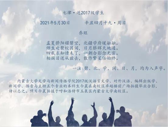 晚会现场也收到了来自老师们的视频祝福,让我们一起来看一下。乔旺老师送给毕业生一首七律诗,祝愿毕业生们前程似锦,幸福一生!