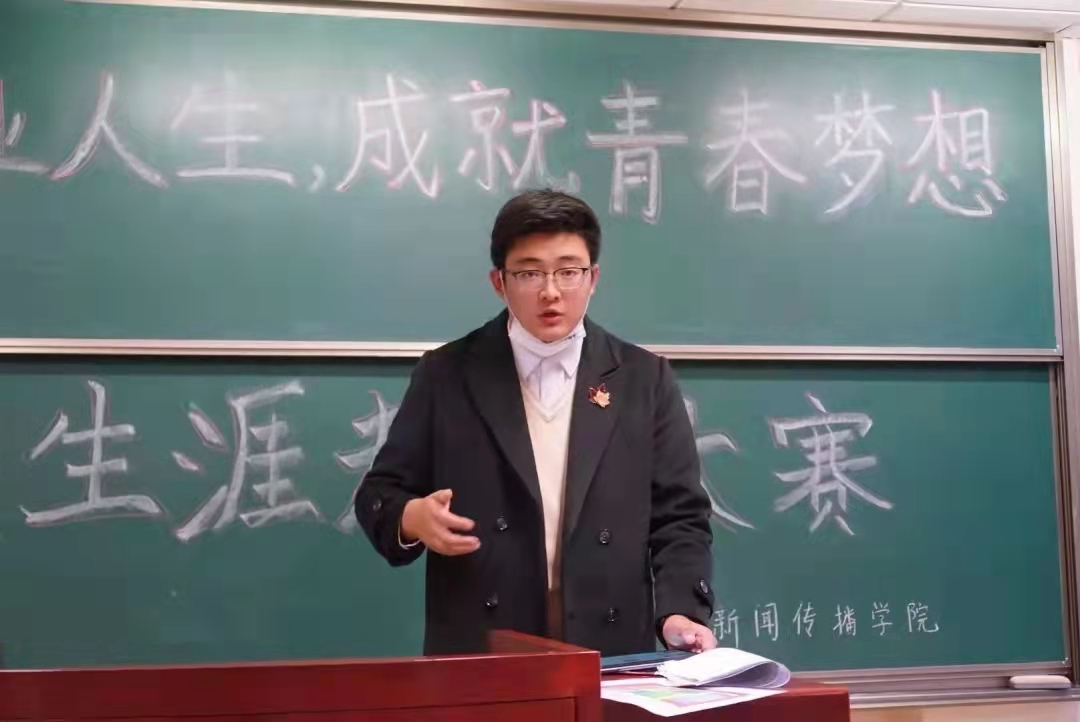 比赛分为自我介绍、职业角色情景模拟、PPT现场展示与问答四大环节。经过初赛选拔,来自21级播音与主持艺术专业的齐鹏博同学、20级网络与新媒体专业的吕宇欣同学、21级网络与新媒体专业的齐蕊同学、21级新闻学专业的白莉、刘芮豪同学成功晋级决赛,先后上场进行展示。