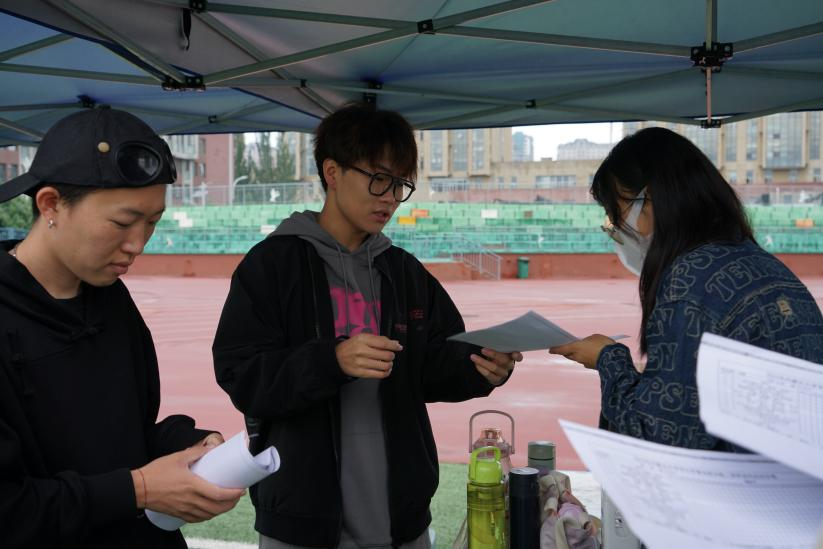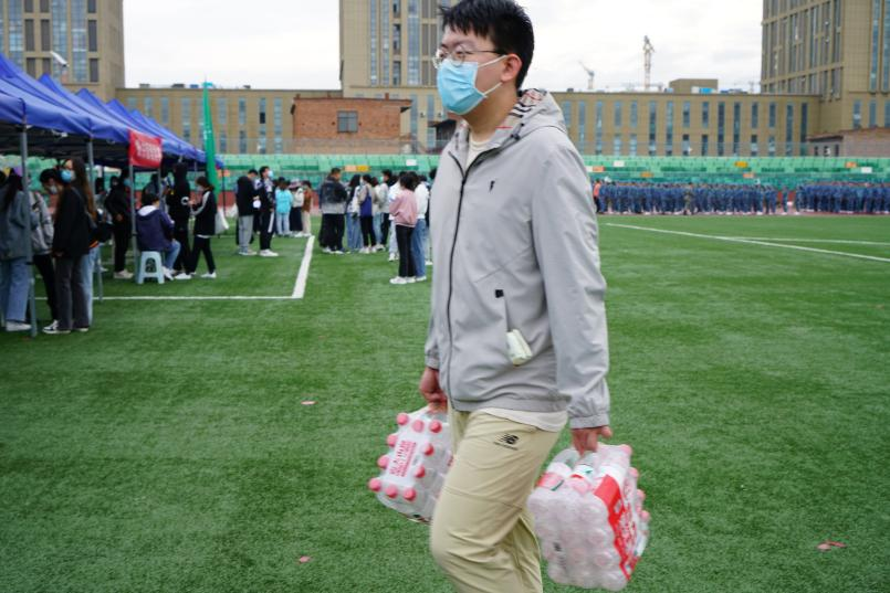 艰苦的训练,离不开默默付出的后勤人员。高年级辅导员和文新院员工组织成员们时刻坚守在训练场一侧,为同学们及时提供矿泉水、花露水、常用药等物品,全力为同学们做好后勤保障。