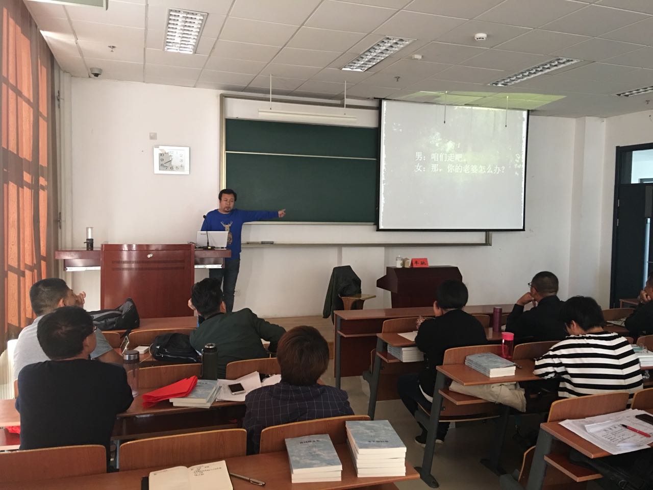 2017年10月23日上午,PA视讯官方网站第八期文研班暨戏剧影视编剧高级研修班成功举办了“喜剧,喜从何来”专题讲座,讲座由著名编剧羊驰主讲,鄢冬博士主持,高明霞教授、第八期文研班学员聆听了此次讲座。