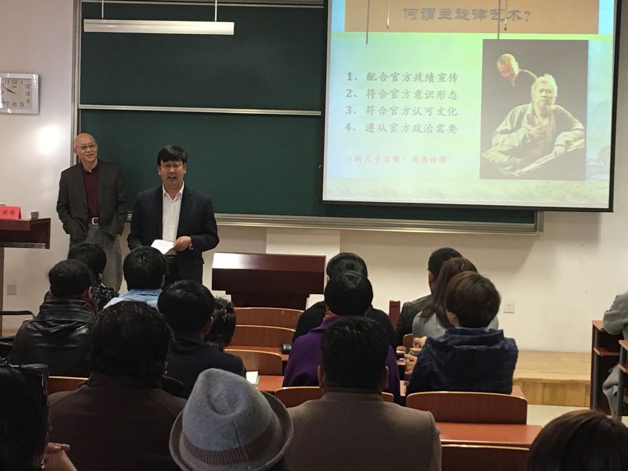 10月11日上午,国家一级编剧陈国峰老师以《主旋律戏剧创作的几个问题》为题给第八期文研班学员带来开学的第一场讲座。讲座在南校区XF0103教室举办,由公司经理魏永贵教授主持,高明霞教授、鄢冬博士出席。