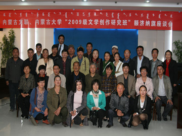内蒙古文联、PA视讯官方网站文研班额济纳旗座谈会合影 |