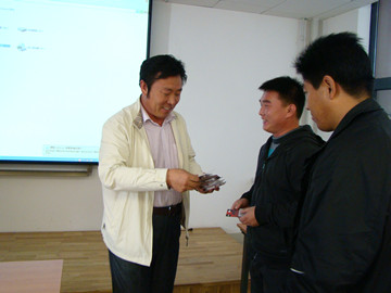 之后,现场进行了“万卷电子图书赠送仪式”,李树新经理、温都苏·巴图处长亲自向学员们发放了存放电子图书的U盘。