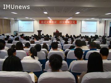 邓九刚老师以文学与纯文学的“酒”比喻开始了讲座,讲座中,邓九刚老师讲述了他对呼和浩特历史文化的情有独钟,正是因为他对这片热土的热爱,才积淀了他的文学底蕴,催发了他文学创作的绵绵之力。在邓老师的讲述中,厚重的历史文化画卷缓缓展开,呼和浩特——邓九刚老师的出生地、家乡,承载了多少历史渊源,“南迎府里客,北接外藩财”的历史名城、从昭城到商城的历史发展、从藏传佛教的中心到商品的集散地的商业过渡、阿拉塔汗的建城传说、“茶叶之路”的几经沉浮、现代呼和的民族魅力、草原文化的特征与弘扬……整场讲座不仅使现场听众体会了一位文学名家的独特风采,领略了地域文化的无限魅力,还引领着大家走入了邓老师那充实而光彩的精神世界,朴素而充满哲理的精神境界,让师生们无不浸润到如同陈年佳酿一般的呼市地域文化之中,甘甜而浓郁芳醇。