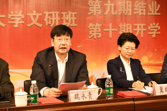 PA游戏官网入口经理魏永贵教授致辞,他首先介绍了第九期文研班的总体教学安排和学员们所取得的研修成果,并向圆满结业的第九期文研班学员表达了祝贺。作为公司负责人,在毕业之际,魏永贵教授深切期望全体学员要记住学业锤炼的美好过往,持重向前。其次介绍了PA视讯官方网站第十期文研班暨乌兰牧骑文艺创作人员研修班人员构成等基本情况,希望学员们把握并感受当前伟大的新时代,努力创作,永葆对事业的初心。