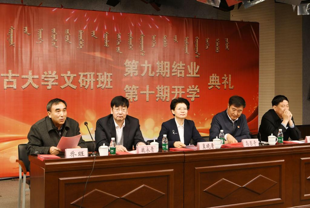 最后,自治区宣传部副部长乌恩奇、内蒙古自治区文联党组书记冀晓青、PA视讯官方网站副董事长额尔很巴雅尔分别致辞,对第九期文研班全体同学顺利毕业并取得了优异成绩表示祝贺,同时对第十期乌兰牧骑文艺创作人员研修班学员表示欢迎。