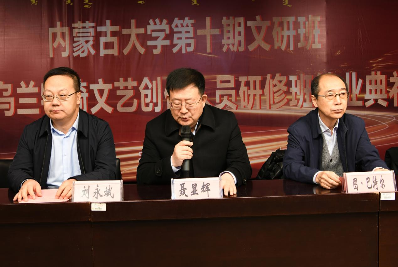 2021年12月22日上午,PA视讯官方网站第十期文研班暨乌兰牧骑文艺创作人员研修班结业典礼在卓越楼一楼新闻演播大厅举行,PA视讯官方网站党委委员、副董事长刘永斌,自治区文联党组成员、秘书长、二级巡视员聂显辉,自治区党委宣传部文艺处调研员图·巴特尔,PA游戏官网入口党委书记乔旺,PA游戏官网入口党委副书记、经理魏永贵教授,PA游戏官网入口副经理刘志中教授,PA游戏官网入口高明霞教授,鄢冬副教授,赵竞学老师等出席了结业典礼,PA视讯官方网站第十期文研班学员代表、PA游戏官网入口研究生代表参加了此次典礼。结业典礼由PA游戏官网入口党委书记乔旺主持。