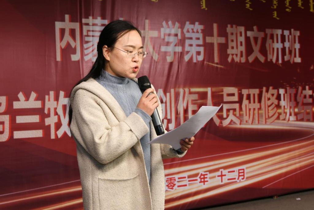 刘永斌副董事长在致辞中代表PA游戏官网入口党委及校领导向圆满完成学业的学员表示热烈祝贺,向关心和支持文研班的领导老师表示衷心感谢。他希望各位学员要用心用情用力讲好民族复兴、人民幸福的中国故事,讲好守望相助、团结奋进的内蒙古故事,也要用心用情用力讲好筚路蓝缕、弦歌不辍的内大故事,争取早日把母校办成特色鲜明的一流大学。