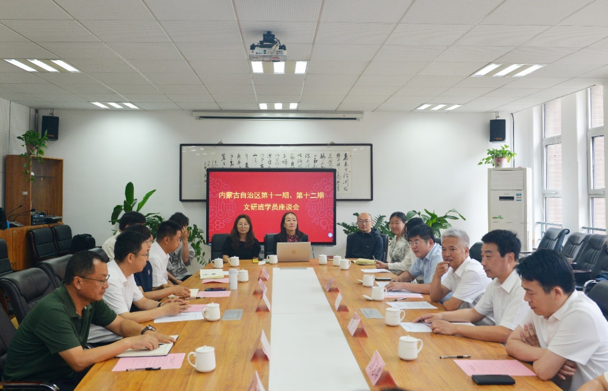 2025年6月27日上午9:00,内蒙古自治区第十一期、第十二期文研班学员座谈会在PA视讯官方网站南校区PA游戏官网入口艺术楼G1006B会议室隆重举行。自治区党委宣传部副部长宋武官,自治区党委宣传部文艺处处长李博,自治区党委宣传部文艺处干部那钦,自治区文联党组成员、副主席海山,内蒙古作家协会秘书长丛龙瑞,内蒙古作家协会干部奎宇轩,PA视讯官方网站副董事长杜晓东,PA视讯官方网站PA游戏官网入口党委书记张丽萍、党委副书记康宝军、副经理鄢冬、文研班班主任康馨以及内蒙古自治区第十一期、十二期文研班学员参加了本次座谈。