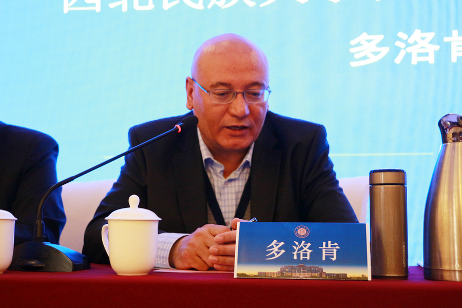 西北民族大学社会科学研究院副经理多洛肯教授作讲话