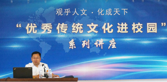 此次是“优秀传统文化进校园”系列讲座第二讲,题目为《中国人的心态文化》,李社长从文化的概念出发,指出古今、中外对文化含义认识的不同,他认为文化内部应该分为四个结构:物态文化、制度文化、行为文化、心态(心理)文化,分别阐述了四种文化结构的具体表现,之后李社长重点阐述了自己对于“中国人的心态文化”这个主题的看法。他认为“中国人的心态文化”可以分为五个方面:“天人合一”的宇宙观、中庸之道的修己治人观、现实实用的价值观、祖先崇拜的宗教情感和阴阳直觉感性趋同的思维。李社长运用丰富的文史知识,指出这五个方面在中国人的文化脉络中的历史渊源,旁征博引,使同学们能够将文化与历史紧密结合起来,充分理解“中国人的心态文化”的具体表现。